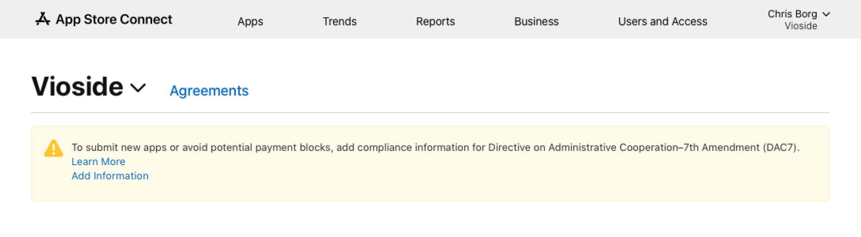 DAC7 stands for the Directive on Administrative Cooperation – 7th Amendment. It is an EU tax transparency law that came into effect in 2023. It does not introduce new taxes. What it does is require digital platforms — including Apple — to report information about the sellers and developers operating on their platforms to EU tax authorities.